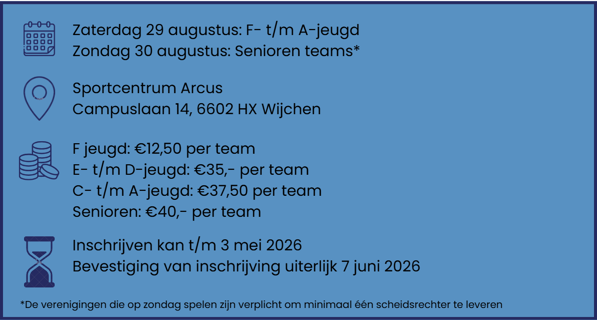 Deelnemende teams zullen uiterlijk 7 juni een bevestiging ontvangen.